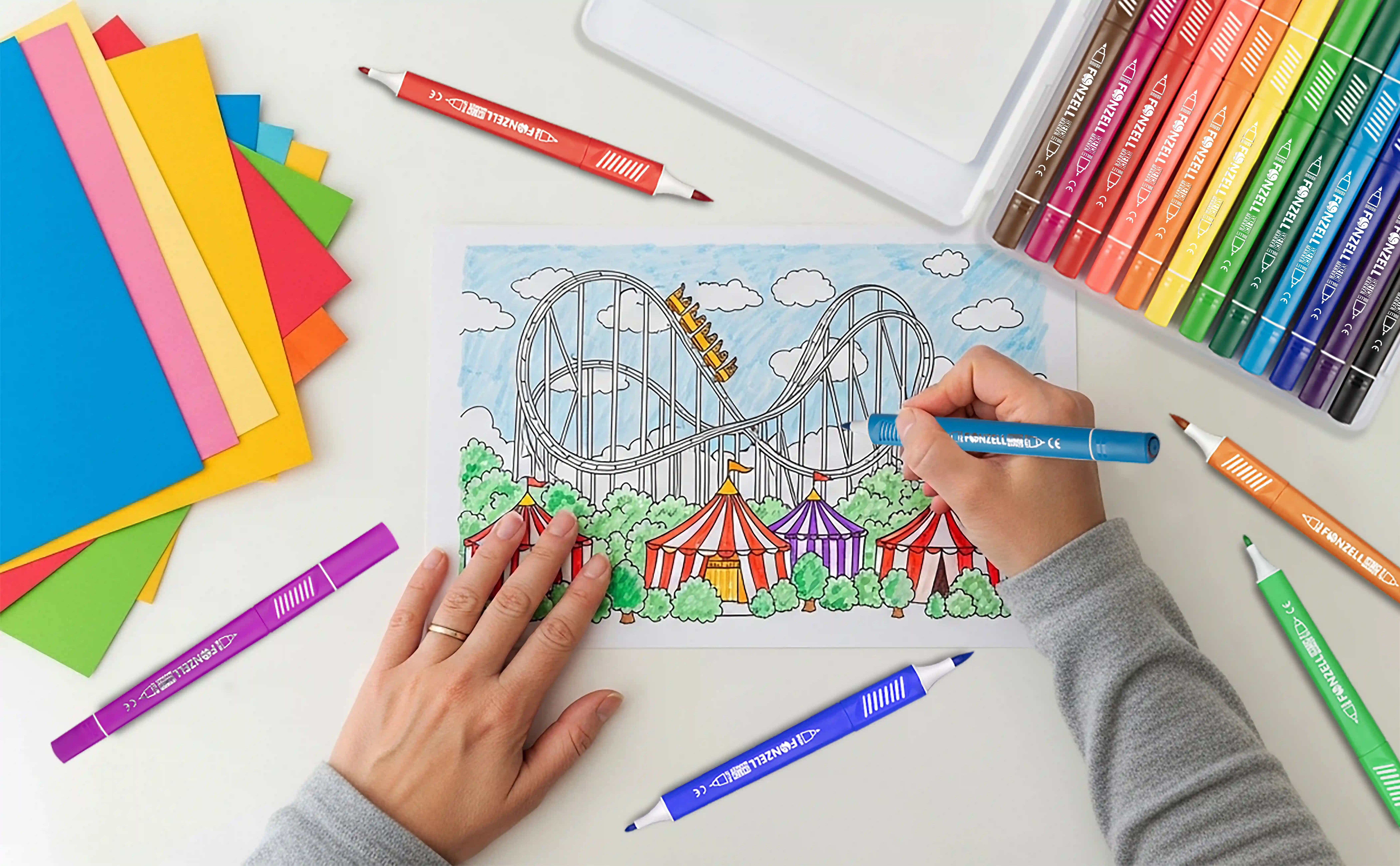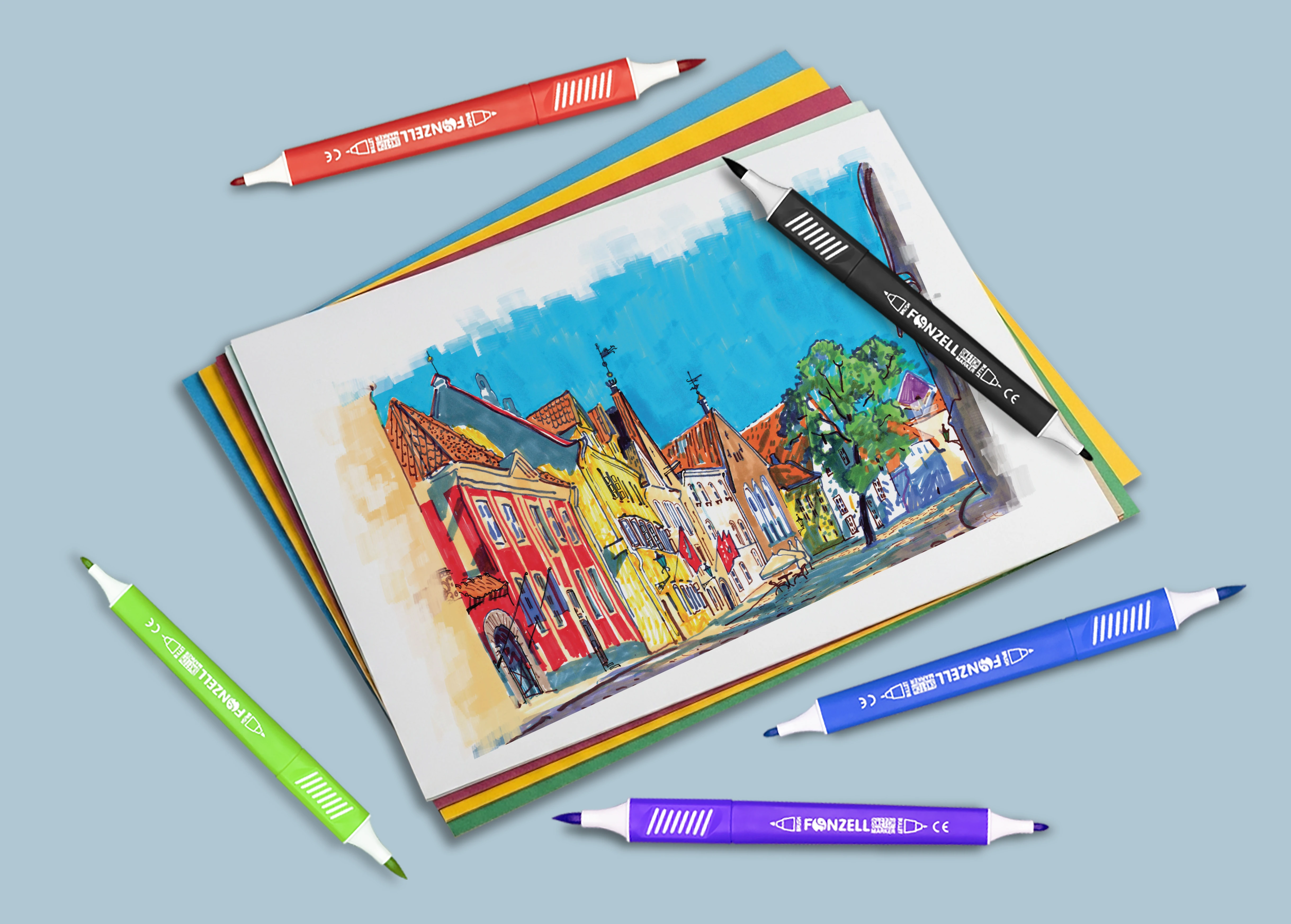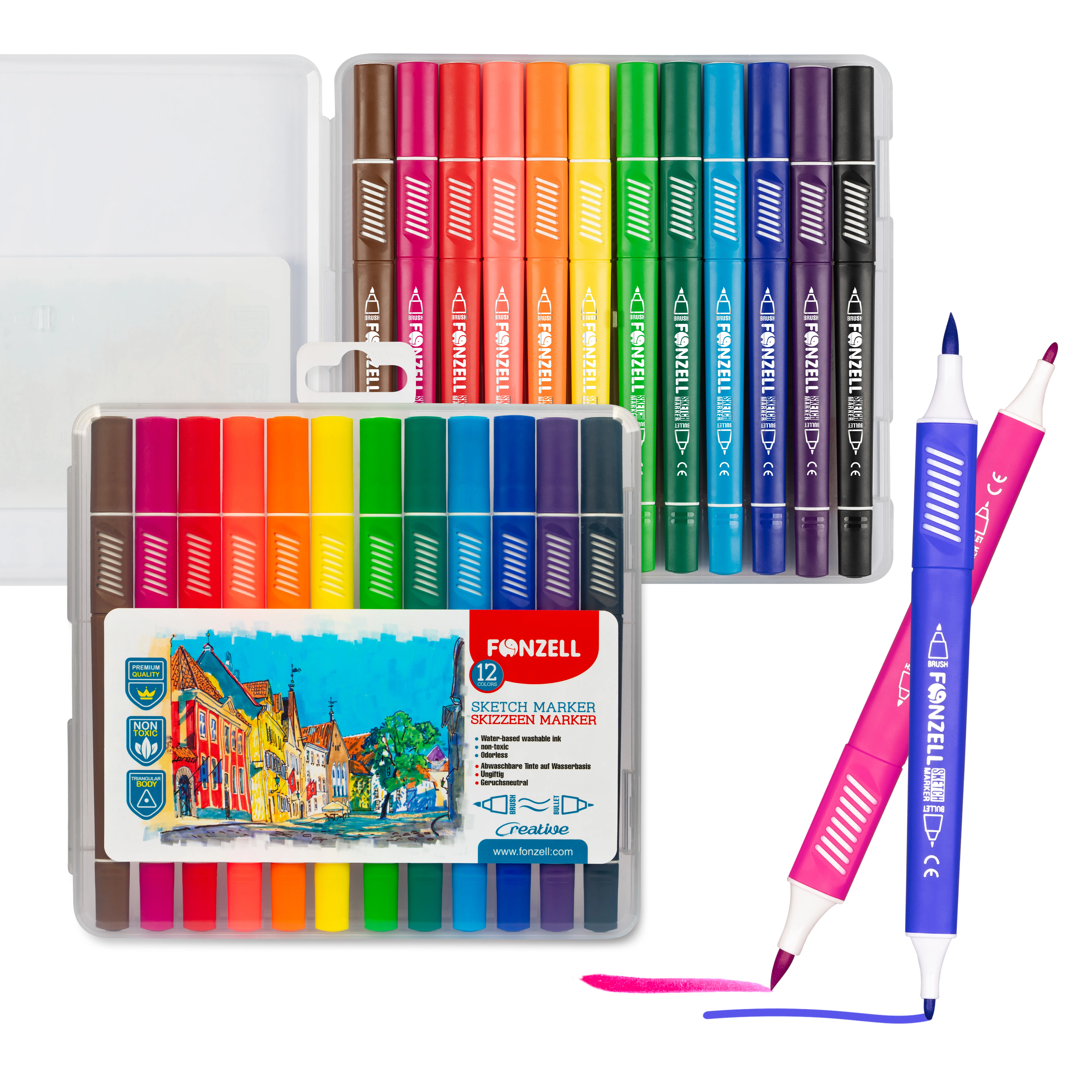 Fonzell Sketch Marker features a dual-tip design, offering both a flexible brush tip and a smooth fine tip for versatile use. The triangular anti-roll body ensures comfortable handling, making it ideal for illustration, hand lettering, and other creative projects. The fine tip creates consistent lines, perfect for detailed sketching or writing, while the brush tip allows for bold strokes. This marker is washable and non-toxic, ensuring safety and ease of use. For the best results, it’s recommended to use smooth, non-textured paper. This marker is a great choice for artists and craft enthusiasts alike.