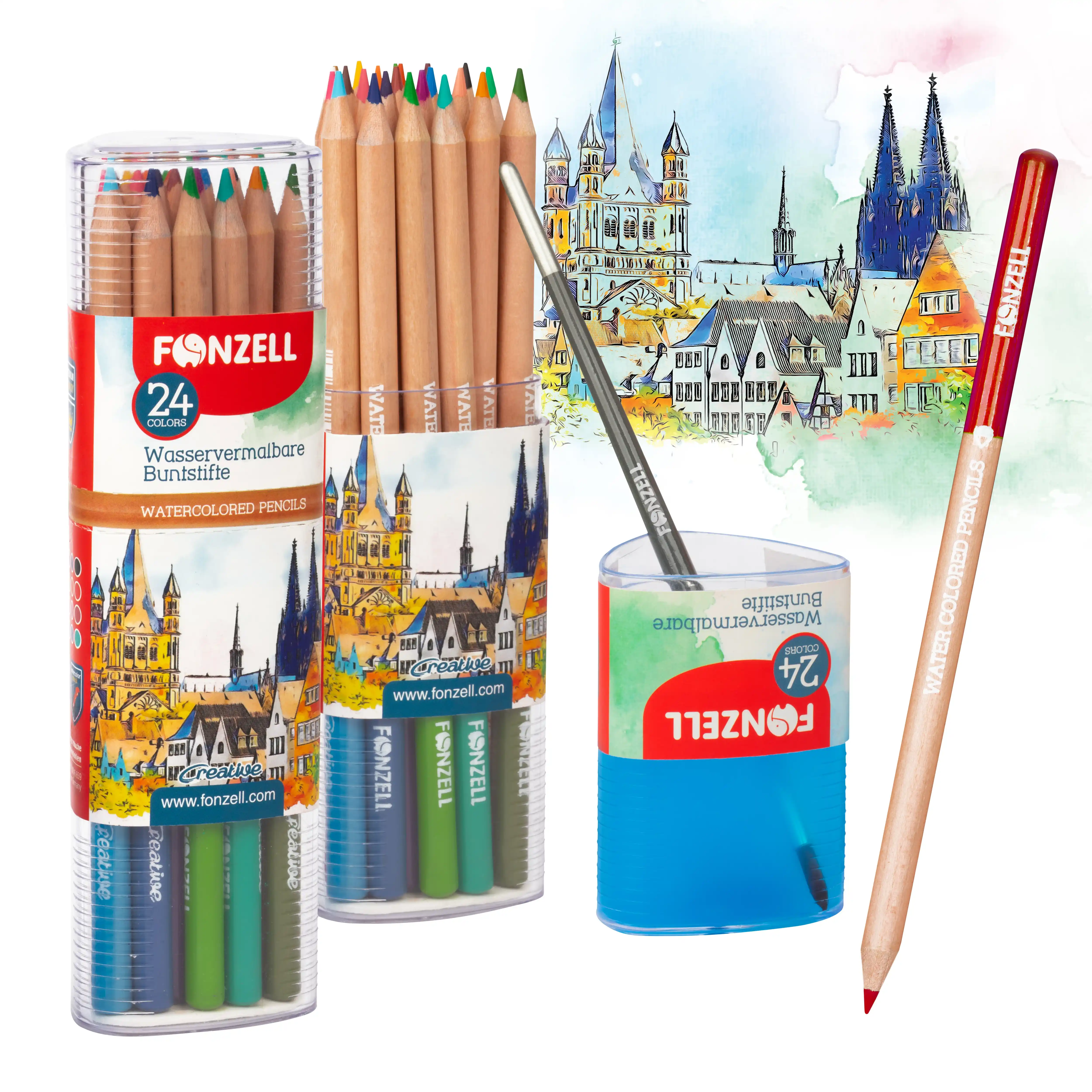 The set includes 24 vibrant watercolor pencils, a soft-grip brush, and a clever crystal-clear storage case that doubles as a portable water cup and pencil holder—making this set perfect for schoolbags, studios, and art classes.