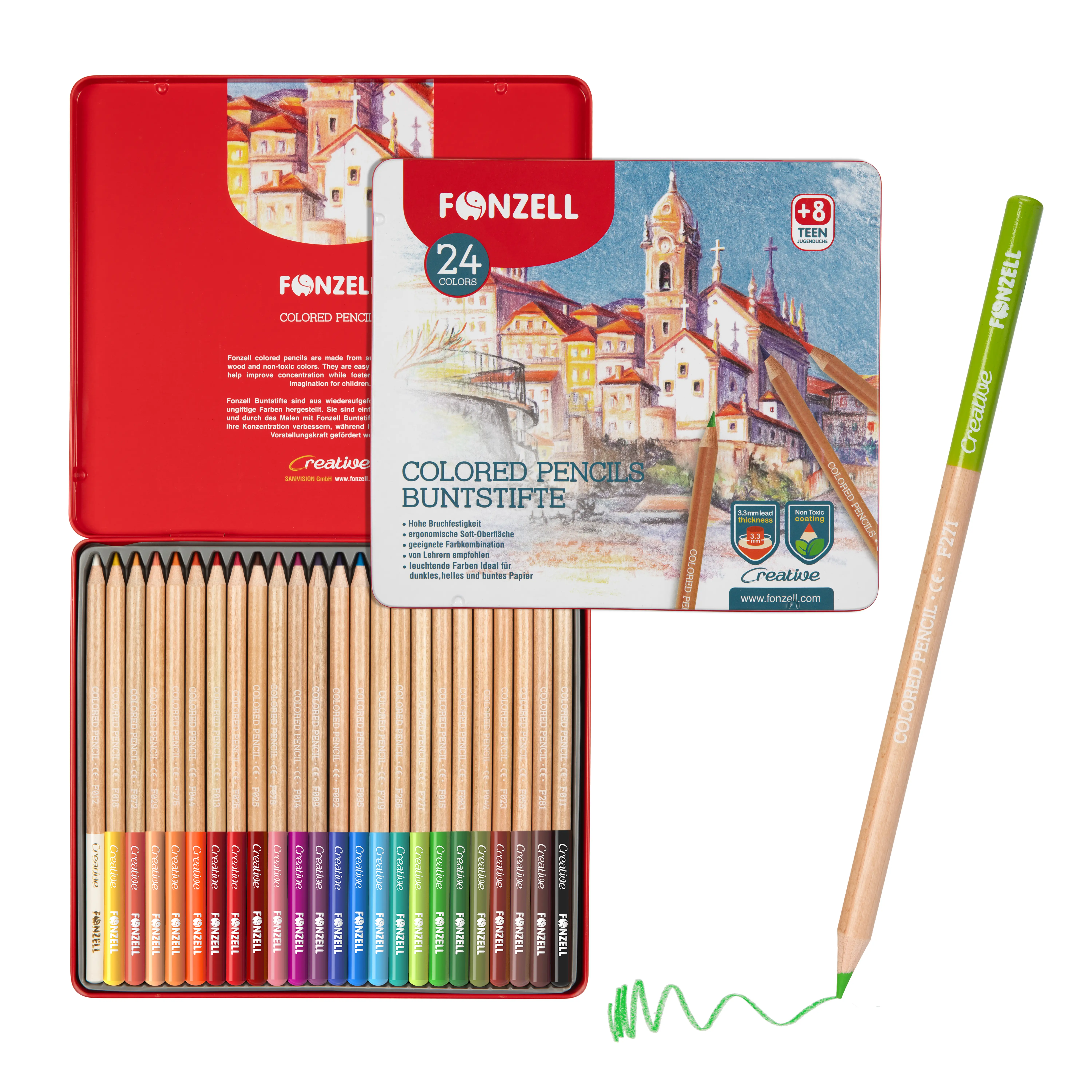 Buy 12+ items and get 40% offDive into a vibrant spectrum of creativity with Fonzell Colored Pencils, meticulously crafted for artists of all ages. Housed in a sleek and sturdy metal tin, this set of 24 pencils combines rich, vivid colors with a smooth, buttery texture that brings every stroke to life.