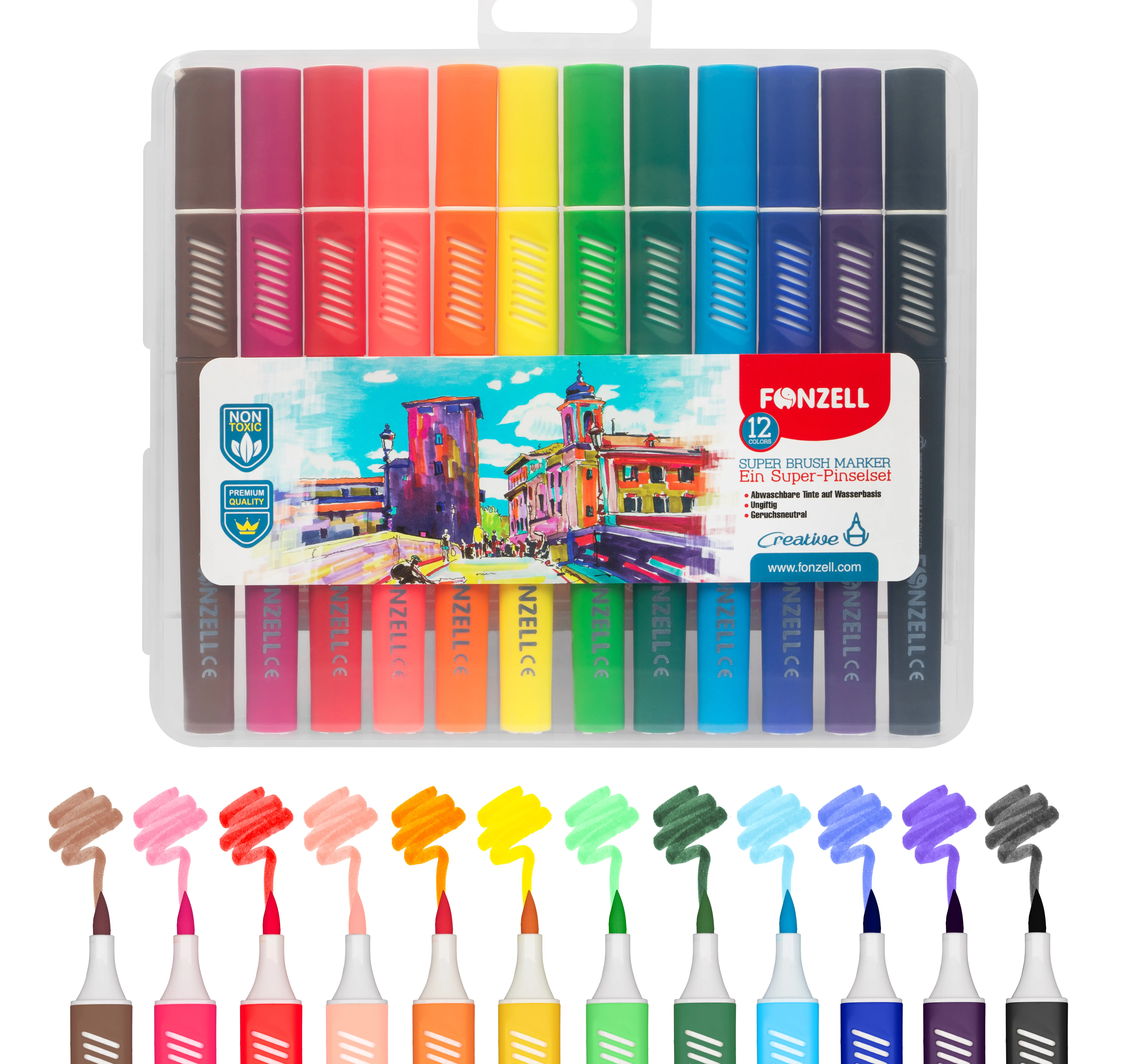 Fonzell Sketch Marker features a dual-tip design, offering both a flexible brush tip and a smooth fine tip for versatile use. The triangular anti-roll body ensures comfortable handling, making it ideal for illustration, hand lettering, and other creative projects. The fine tip creates consistent lines, perfect for detailed sketching or writing, while the brush tip allows for bold strokes. This marker is washable and non-toxic, ensuring safety and ease of use. For the best results, it’s recommended to use smooth, non-textured paper. This marker is a great choice for artists and craft enthusiasts alike.